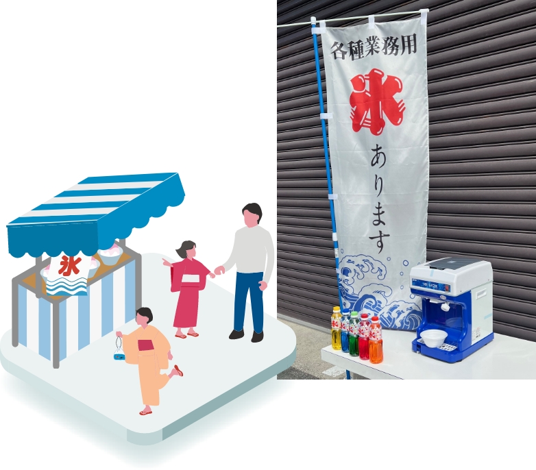 ひんやりスイーツから業務用氷まで。用途に合わせたクールダウンをお届けします。