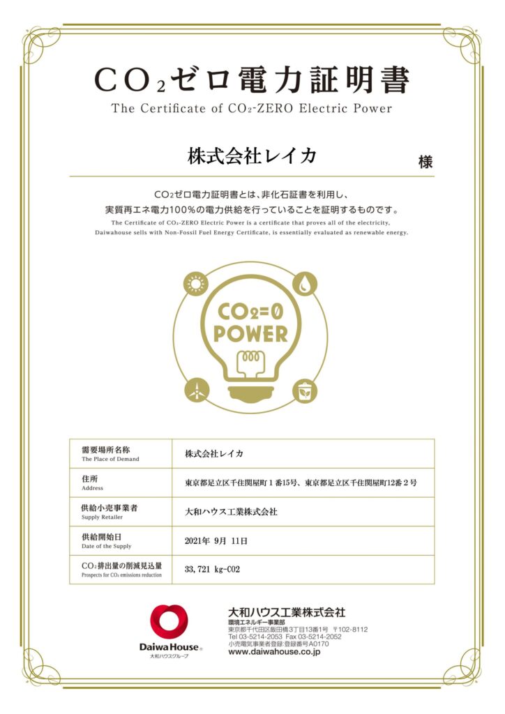 株式会社レイカは社屋や倉庫で使う全ての電気を「レイカでCO₂ゼロ電気」にしています。だから、使う電気のCO₂排出量は実質ゼロ。地球にちょっといいこと、毎日やってます。 皆様も電気を「レイカでCO₂ゼロ電気」に替えるだけで、環境配慮もサステナブル経営もスマートに実現できます。我々は、環境を考える企業の新しいスタンダードをサポートします。 →ご興味にあるかたはこちらをチェック【レイカでCO₂ ゼロ電気】