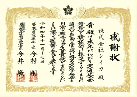 自動販売機を設置させていただいている各警察署より、地域警備の協力や、コロナウイルス感染症対策中の安全安心な街づくりへの協力、交通安全事故防止などに対する感謝状を頂戴しております。